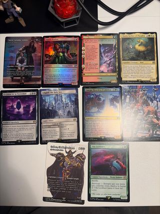 Lote de cartas de Magic: The Gathering con temática de Final Fantasy. - Vayne Carudas Solidor - Queen Brahne - Esper Terra - Choco, Seeker of Paradise - El Cristal de la Oscuridad - Ishgard, the Holy See - Omega, Heartless Evolution - Vaan, Aspiring Sky Pirate - Golbez, Clad in Darkness - Tifa Lockhart