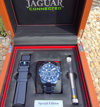 Nuevo en caja. Nunca usado. Elegante reloj Jaguar Connected en su edición especial, presentado en una caja de madera. - Diseño moderno y sofisticado. - Incluye correa adicional y herramienta para ajuste. - Caja de madera con interior forrado.