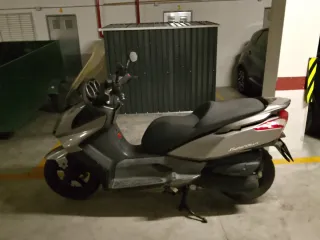 Maxi scooter Kymco Super Dink 125 en color plata. Ideal para desplazamientos urbanos y rutas. - Diseño moderno y elegante. - Asiento cómodo para el conductor y pasajero. - Amplia cúpula para protección contra el viento. Con cambio de correa y rodillos, aceite y filtros en Noviembre del 2025. ITV vigente hasta 2027.Con 36000km.