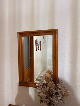 Elegante espejo con marco de madera, perfecto para dar un toque especial a tu recibidor o cualquier estancia. - Marco de madera con acabado natural. - Cristal de espejo de alta calidad.