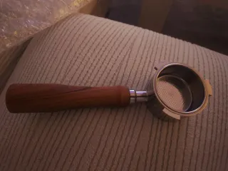 Portafiltro para cafetera Delonghi con mango de madera. - Material del mango: Madera. - Material del portafiltro: Acero inoxidable. EC680/EC685/EC885 compatible