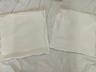 Dos cojines circulares de Ikea, perfectos para un diván o como decoración. Las medidas vienen en las fotos. Las cremalleras se estropearon al lavarlos, habría que cambiarlas. - Forma cilíndrica. - Funda de tela.