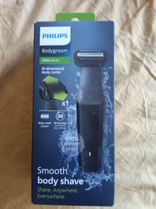 Afeitadora corporal Philips Bodygroom Serie 5000. La gané en un sorteo y está sin estrenar. - Afeitado completo y suave. - Accesorio para espalda incluido. - 100% resistente al agua (apta para ducha). - Batería de Li-Ion de 60 minutos