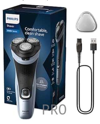 Afeitadora eléctrica Philips Serie 3000. - Tecnología Wet & Dry para uso en seco o mojado. - Diseño ergonómico para un agarre cómodo. - Cabezales flexibles que se adaptan al contorno del rostro. NO TIENE CABLE ESTA COMO NUEVA