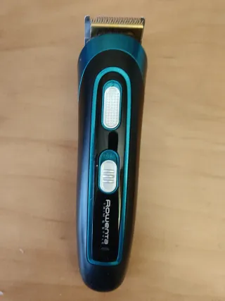 Set de afeitadora eléctrica y cortapelo con varios accesorios. Modelo Rowenta TN9130. - Incluye 5 cabezales (uno tiene varios dientes rotos, ver la ultima foto) y un peine para el cabezal cortapelos. - Base de carga y soporte para accesorios. - Adaptador de corriente incluido. Funciona perfectamente y el único defecto es que al cabezal cortapelos tiene varios dientes rotos. Todo lo demás está en perfecto estado.