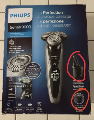 Afeitadora eléctrica Philips Serie 9000, ideal para un afeitado apurado. -Solo 2 usos,regalada en reyes,en excelente estado,falta accesorios marcado en rojo en la caja( no lo encuentro) precio algo negociable!! - Cuchillas V-Track Precision PRO. - Cabezales ContourDetect flexibles en 8 direcciones. - Uso en seco o con espuma. - Incluye accesorio SmartClick. - Batería Li-ion con 60 minutos de autonomía. - Carga completa en 1 hora.
