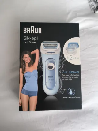 Afeitadora eléctrica Braun Silk-épil Lady Shaver, modelo 3 en 1. Sin uso, solo se ha abierto para comprobar su estado y que funciona. - Incluye afeitadora y exfoliante. - Apta para uso en seco y húmedo. - Incluye 2 accesorios extra.