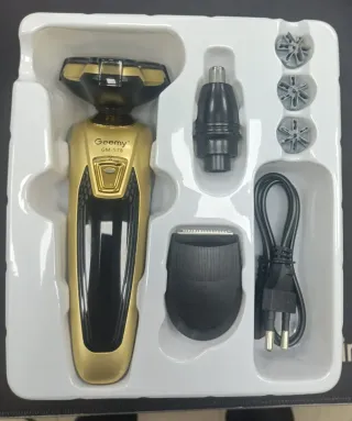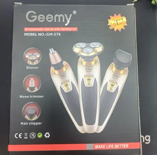 Set de afeitado y recorte Geemy 3 en 1, modelo GM-578. Es recargable y versátil para el cuidado personal. Nueva, en perfecto estado. - Incluye cabezal de afeitadora. - Incluye cabezal de recortador de nariz. - Incluye cabezal de cortapelos. Envío o entrega en Móstoles.