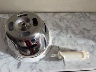 Accesorio picador de hielo para batidora Minipimer con sistema Easy Click, incluye: - Cuchilla afilada para picar hielo. - Recipiente de acero inoxidable. Se acopla al accesorio picador grande MQ40 de otro anuncio. El plástico del eje por la parte de abajo está dañado pero no afecta al uso por engancha al motor por arriba