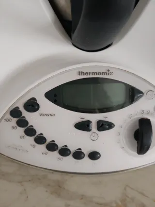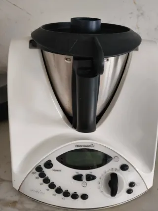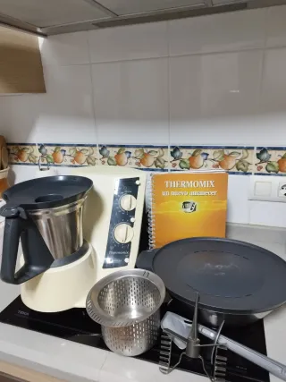 Robot de cocina Thermomix TM-31. - Diseño blanco y plateado. - Panel de control con pantalla digital y dial. - Asa integrada para facilitar el manejo. Con los accesorios que se ven en las fotos. Del uso tiene algunos botones rajados, tiene la junta de la tapa también un poco rota y la parte de abajo de la Thermomix se quemó hace años con la vitrocerámica pero funciona perfectamente.