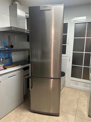 PARA REPARAR LAVADORA ARREGLAR BOMBO Y NEVERA CAMBIAR VENTILADOR PRECIO JUNTOS Se vende conjunto de electrodomésticos Siemens. - Frigorífico de acero inoxidable. - Lavadora blanca.