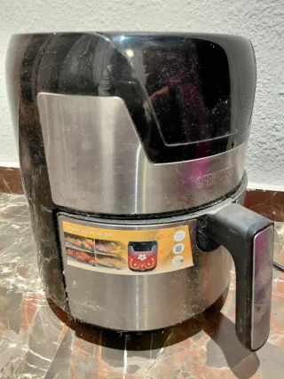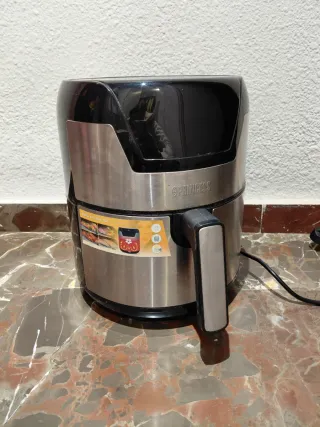 Freidora de aire XXL, capacidad de 4.5 litos, de la marca Princess, con un diseño moderno en acero inoxidable y negro. - Acabado en acero inoxidable y negro. - Asa ergonómica para facilitar su uso. - Panel de control con indicadores.