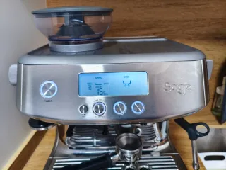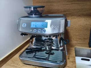 Cafetera espresso Sage Barista Pro en acabado plateado. - Panel de control digital con ajustes de molienda y tiempo. - Incluye portafiltro y accesorios. Si te gusta el expresó está cafetera es genial además está muy bien cuidada con sus descalcificación y limpieza cada vez que lo ha pedido la cafetera incluye todos los accesorios y caja original para su trasporte sin problema.