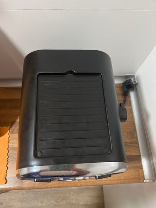 Tostadora Breville Edge Collection sin estrenar. Perfecta para tostar dos rebanadas de pan. Con complemento rejilla superior para calentar bollitos. - Modelo: Edge Collection - Capacidad: 2 rebanadas - Color: Plateado y gris oscuro - Apta para rebanadas de pan altas La compré por error y perdí el ticket de compra.