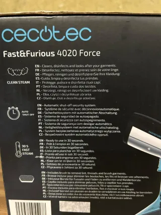 Plancha vertical Cecotec Fast&Furious 4020. - Potencia de 1400 W. - Vapor continuo de 25 g/min. - 2 modos de vapor. - Panel táctil.