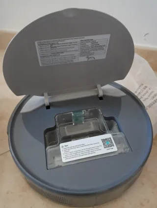 Robot aspirador Lefant, ideal para mantener tu hogar limpio de polvo. El robot se ha usado unos 8 meses, tiene el segundo juego de escobillas y el segundo filtro sin usar. Funciona perfectamente y se puede manejar con la app sin problema. Solo sirve para eliminar el polvo, no friega, pero es útil para quitar fácilmente las pelusas de la semana mientras haces otras tareas.