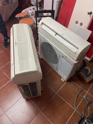 Conjunto de dos unidades de aire acondicionado con bomba de calor. Desmontados por tecnico con su gas recogido para realizar la instalación de nuevo. Se han desmontado de una reforma y estaban funcionando a la perfección