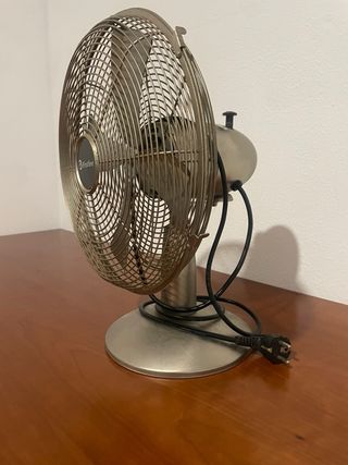 Ventilador de sobremesa con un diseño clásico y elegante. - Rejilla protectora de metal. - Base estable de metal. - Cable de alimentación incluido.