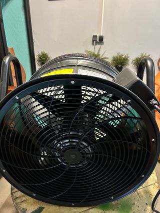 Potente ventilador industrial con motor de 950W. Diseñado para mover grandes volúmenes de aire de manera eficiente. - Estructura robusta. - Rejilla de protección. Salas de ensayo , se utilizo una vez para una carroza