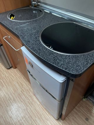 Dos ambientes , salón convertible en cama de matrimonio y habitación independiente con dos camas , cocina sin estrenar , nunca se ha cocinado dentro ,baño con ducha y wáter químico extraíble .Aire acondicionado , avance extragrande . Con seguro hasta noviembre .