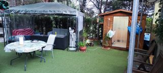 Parcela de 150m2 en muy buena zona, vecinos, vistas, tranquilidad de lo mejor del camping. Completamente equipado, dos caravanas acondicionadas para habitaciones (2 camas de matrimonio, 1 litera y un sofá cama). *NO pueden circular. -Cabaña completa como cocina. -Cabaña trastero con muchos utensilios. -Pergola equipada con todo. -Suelo con césped artificial y piedras blancas en zona chillout. -Jardin con puerta, limonero, sauce, olivo, plantas, bananera, etc. .. -Cuarto de baño de obra. -Cocina abierta con zona para barbacoa. Tele 32", aire acondicionado, karcher, soplador, radiador, horno aire, microondas, vajilla, sofás, balancí