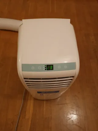Se vende aire acondicionado portátil, funciona perfectamente, es inverter de bomba de calor y bomba de frío es potente enfría una superfície de 35 metros cuadrados sin problema, se vende con los tubos y los acoples para montar, como nuevo y no le hace falta poner garrafa de desagüe.