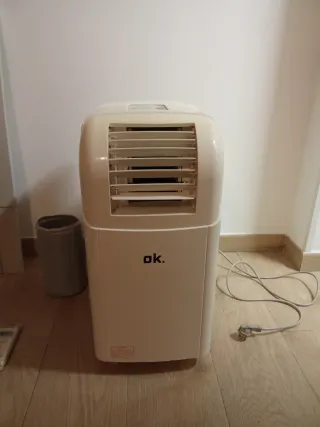 Aire acondicionado portátil de la marca OK. - Color blanco. - Incluye mando a distancia. - Ruedas para facilitar su movilidad.
