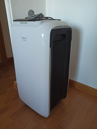 Aire acondicionado portátil en buen estado. Es de color blanco y tiene un diseño compacto. - Ideal para habitaciones pequeñas. - Fácil de usar. - En perfecto estado estético.