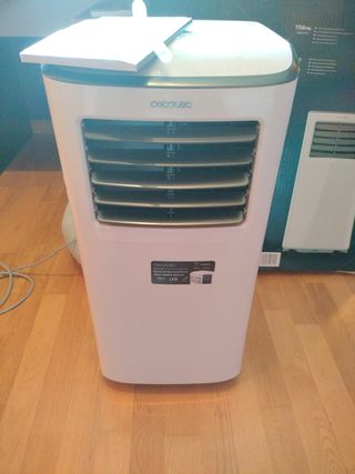 Hola! Vendo este aire acondicionado portátil Cecotec, en muy buen estado. Es de color blanco y tiene un diseño elegante y compacto. - Dispone de una pantalla digital. - Incluye mando a distancia. - Tiene ruedas para facilitar su transporte. -Temporizador ForceClima 7050. 3 en 1. -Refrigeración, ventilación y deshumidificación. -1800 Frigorías, 7000 BTU, Caudal 300 m³/h.
