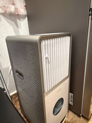 Aire acondicionado portátil de la marca One Concept. Su diseño blanco se adapta a cualquier espacio. - Ruedas. Falta una rueda y he hecho un apaño - Indicador de nivel de agua. Solo recogida