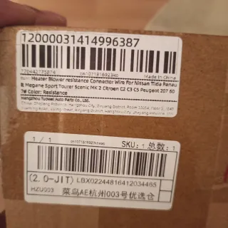 Resistencia para el sistema de aire acondicionado de vehículos. - Compatible con Nissan Tiida, Renault Megane Sport Tourer, Scenic MK 2, Citroen C2, C3, C5 y Peugeot 207 60. - Fabricado en China.