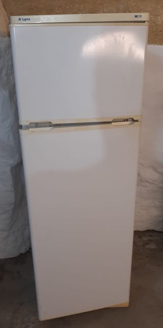 Nevera de color blanco, marca Lynx. Ideal para mantener tus alimentos frescos. - Diseño de dos puertas. - Compartimento congelador superior.