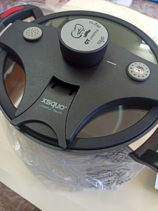 Olla de baja presión de la marca xsquo, ideal para cocinar de forma rápida y eficiente. Está nueva. - Marca: xsquo Useful Tech - Modelo: Olla a presión - Color: Negro y Gris