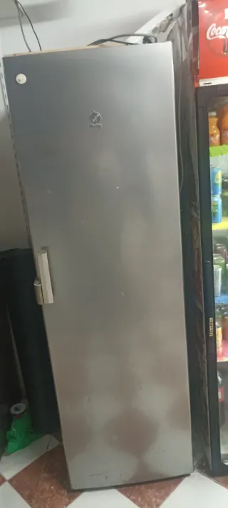 Congelador vertical de color plateado. - Diseño moderno y funcional. - Asa integrada para fácil apertura.