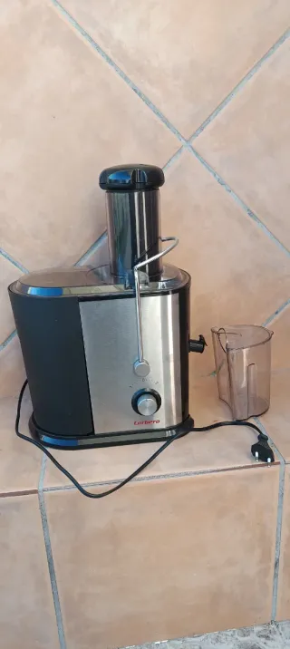 Licuadora de la marca Corberó con 800W de potencia. Su diseño combina acabados en acero inoxidable y negro. - Cuerpo principal en acero inoxidable y plástico negro. - Boca de alimentación. - Jarra para el zumo. - Selector de velocidad. Solo se ha usado 2 veces para probarla, me tocó en un sorteo pero no la utilizo.