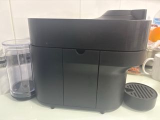 Cafetera Nespresso Vertuo en color negro. Diseñada para preparar café de alta calidad. - Marca: Nespresso - Modelo: Vertuo - Color: Negro - Incluye base para taza con logo DeLonghi.