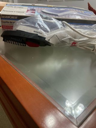 Plancha vertical SilverCrest para eliminar arrugas y pelusas de la ropa. - Potencia de 1000W. - Incluye cepillo para pelusas. - Mango ergonómico.
