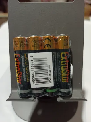 Pack de 4 pilas alcalinas AA Extrastar. - Modelo: Special Duration. - Fecha de caducidad: 12-2029.