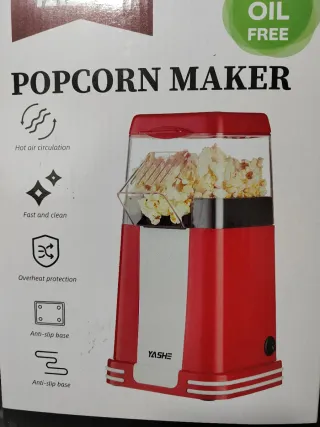 Máquina para hacer palomitas de maíz con diseño moderno y compacto. Ideal para disfrutar de palomitas caseras de forma rápida y saludable. - Circulación de aire caliente. - Fácil de limpiar. - Protección contra sobrecalentamiento. - Base antideslizante.