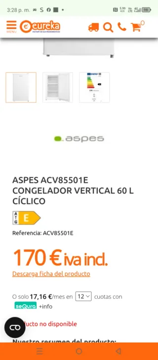 Congelador Aspes 4 meses de uso