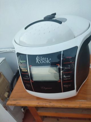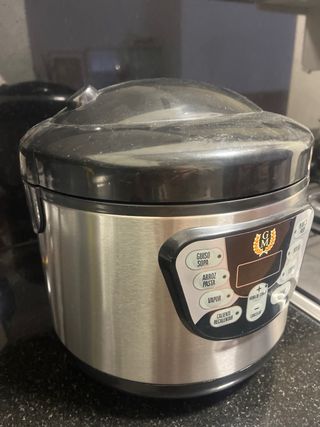 Olla de cocina, muy práctico, reduce el tiempo de elaboración, puedes programar el tiempo para que salte solo y al llegar a casa tener la comida preparada, se pueden hacer muchas recetas en el, ( guisos, verduras al vapor, dulces...) tapa y recipiente desmontable para poder limpiar fácilmente , usado pero funciona perfectamente super bien de precio!!