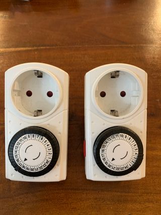 Temporizador, enciende y apaga el flujo de corriente segun la hora que le pones. De enchufa y le enchufas cualquier electrodoméstico o luz.