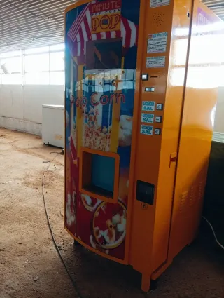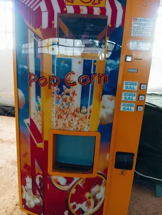 Máquina de palomitas para vending, completamente nueva. Recién desembaladas para sus fotos. Procendete de fin de stocks,últimas unidades - Diseño llamativo con temática de Pop Corn. - Panel lateral con opciones de sal y euro (€). Pantalla digital, sistema intuitivo , varios compartimentos para varios sabores, precio 1500 euros está semana. Adjunto fotografías de otros modelos de calidad inferior y precio desde china, no baja ninguna de 2200. 1500 está semana, podemos hablar de muebles para dejarla totalmente encajada en fachada . No volverme loco, es nueva