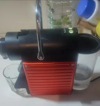 Cafetera Nespresso de color rojo. - Diseño moderno y compacto. - Depósito de agua transparente. - Caja de cápsulas de regalo.