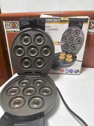 Máquina para preparar deliciosas rosquillas caseras. Su diseño permite hacer varias a la vez. - Placas antiadherentes. - Indicador luminoso de encendido. - Compacta y fácil de guardar.