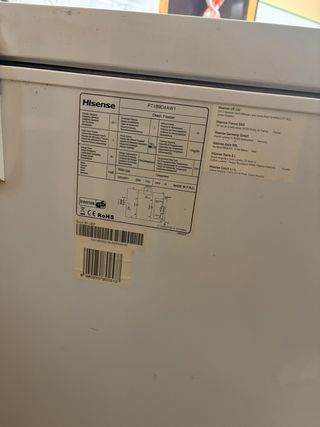 Congelador horizontal de la marca Hisense en color blanco. Ideal para almacenar alimentos. - Diseño compacto. - Tapa abatible. Algo negociable