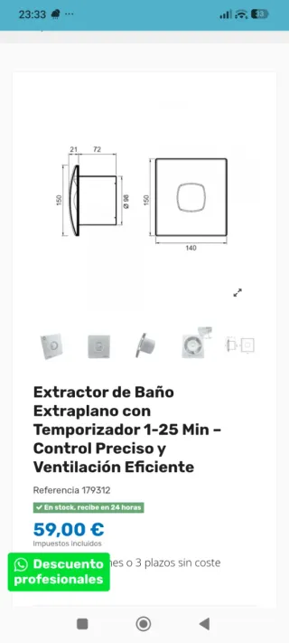 Extractor de baño ATMOSS extraplano con temporizador. - Control preciso y ventilación eficiente. - Referencia: 179312.