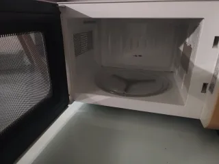 Microondas blanco de la marca Midea, con un diseño moderno y compacto. - Panel de control con temporizador y selector de potencia. - Función de descongelación. - Etiqueta energética visible. - Nunca se ha utilizado, se vende porque me an incluido el microondas en la cocina nueva