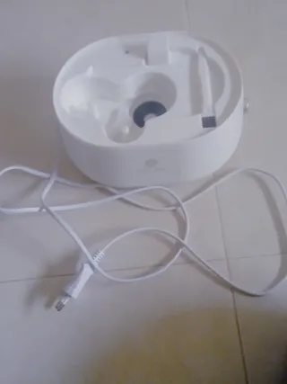 Humidificador con un diseño moderno y compacto, ideal para cualquier espacio. - Parte superior translúcida en color azul. - Base blanca. - Incluye cable de alimentación.