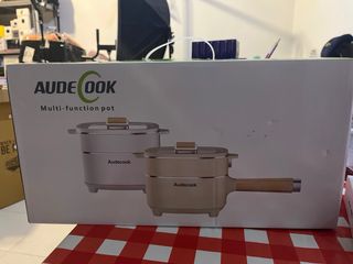 Olla eléctrica multifunción de la marca Audecook. Presenta un diseño moderno y elegante. - Color negra y beige. - Acabado mate. - Tapa con asa de madera. - Asa lateral de madera.